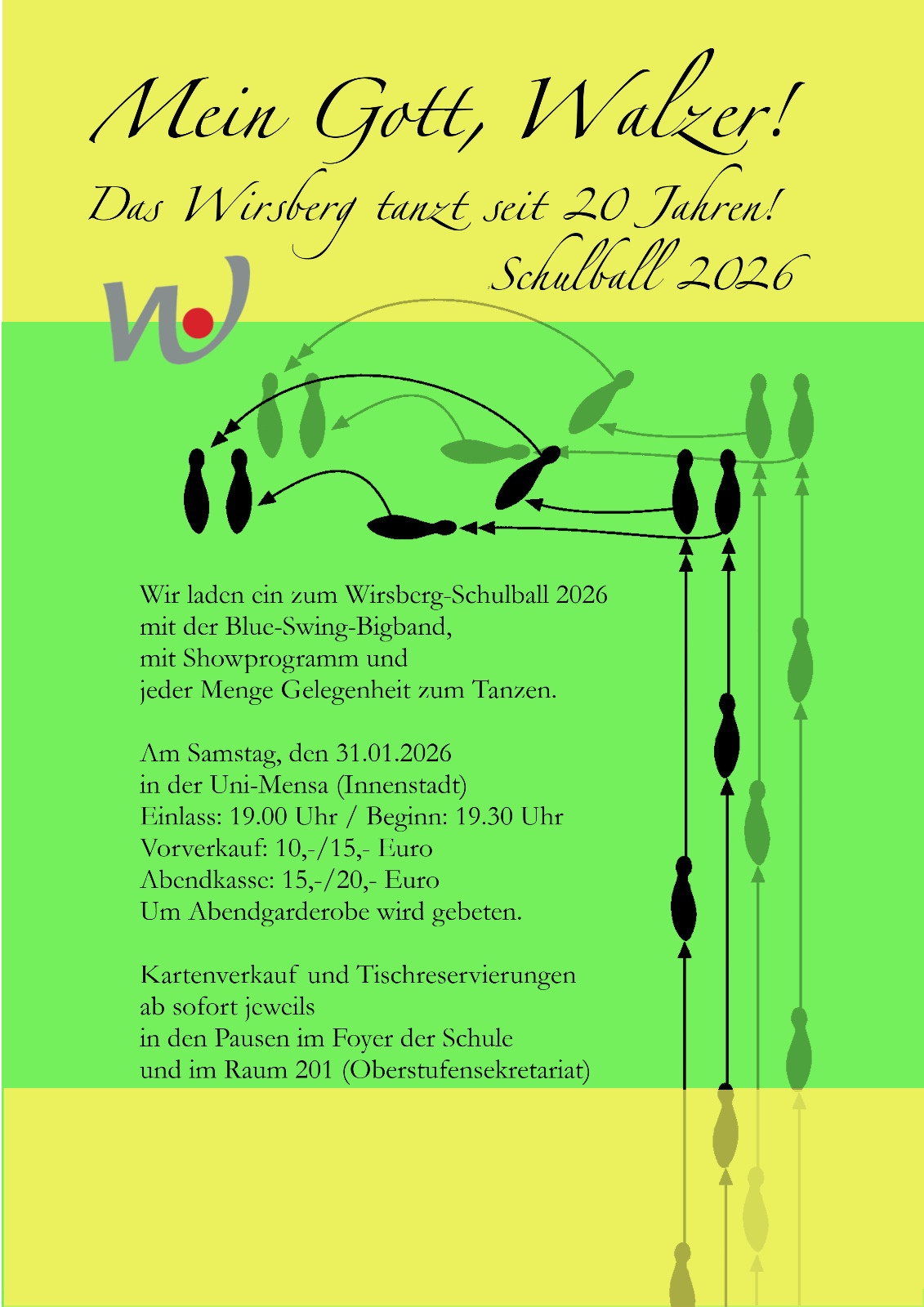 Wir laden ein zum Wirsberg-Schulball 2026 mit der Blue-Swing-Bigband, mit Showprogramm und jeder Menge Gelegenheit zum Tanzen.