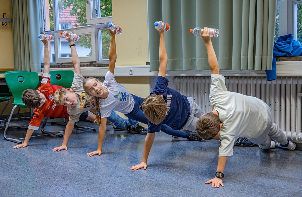 Am Donnerstag fand der langjährig bewährte Gesundheitstag für unsere fünften Klassen statt. Die jüngsten Schülerinnen und Schüler konnten an vielfältigen Bewegungsangeboten teilnehmen und ihr Wissen über einen gesunden Lebensstil erweitern. Für zusätzliche Motivation sorgten Frau Greb, Herr Liebald und Herr Kraus, die in den Pausen mit einem musikalischen Bewegungsprogramm für gute Stimmung sorgten.