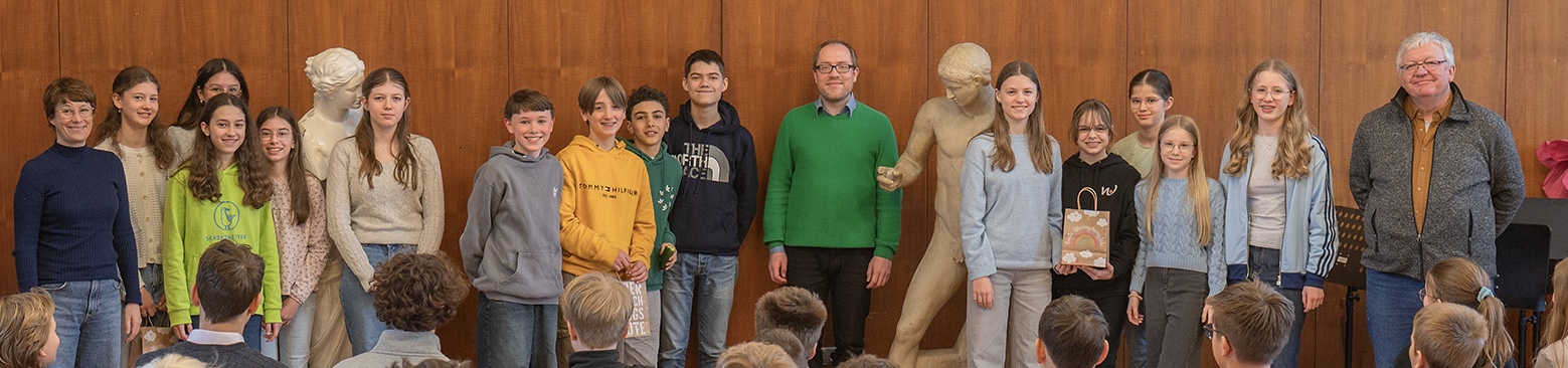 Auch in diesem Jahr begaben sich die siebten Klassen unserer Schule wieder auf eine spannende Reise in die Welt des antiken Griechenlands – beim traditionellen Griechentag! An abwechslungsreichen Stationen konnten die Schülerinnen und Schüler ihr Wissen testen, erweitern und dabei viele neue Eindrücke sammeln. Mit viel Neugier und Engagement entschlüsselten die Klassen griechische Schriftzeichen, meisterten knifflige Quizfragen rund um Mythologie, Götterwelt und bedeutende Orte der Antike. Besonders beliebt war erneut das „Scherbengericht“, das sich an der athenischen Demokratie orientiert. Statt jedoch jemanden zu verbannen, wurde hier auf kreative Weise abgestimmt: Die Schülerinnen und Schüler verewigten auf Tonscherben ihre Lieblingslehrkräfte.Das Ergebnis konnte sich sehen lassen – die „Wahlurne“ war am Ende des Tages prall gefüllt mit zahlreichen Namen. Ein schönes Zeichen für das gute Miteinander an unserer Schule und die Wertschätzung gegenüber den Lehrkräften. Die drei besten Teams aus allen siebten Klassen durften sich über Preise freuen.