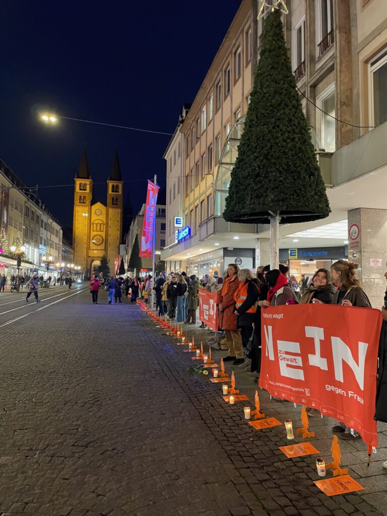 So auch die Jugendlichen des Wirsberg-Gymnasiums. Denn zusammen mit Zonta Club Elektra Würzburg sind wieder Plakate entstanden, die am Abend des 25. Novembers bestens illustrieren, dass auch Jugendliche sich gesellschaftspolitisch verantwortlich zeigen: Von 17.00 bis 18.00 Uhr stand eine bunt gemischte Menschenkette vom Domplatz bis zum Vierröhrenbrunnen – Anlass und Art der Aktion erläutern die Plakate aus dem Kunstunterricht!