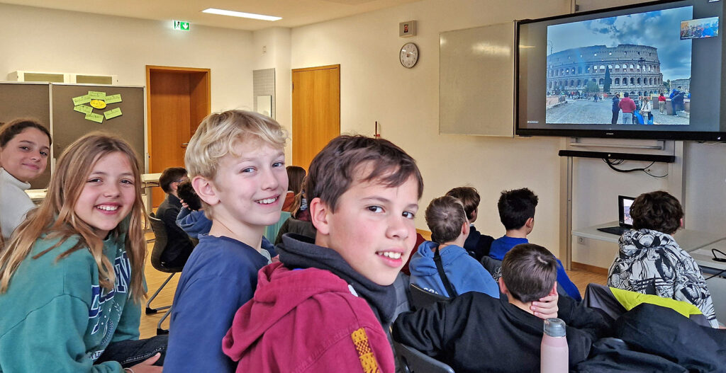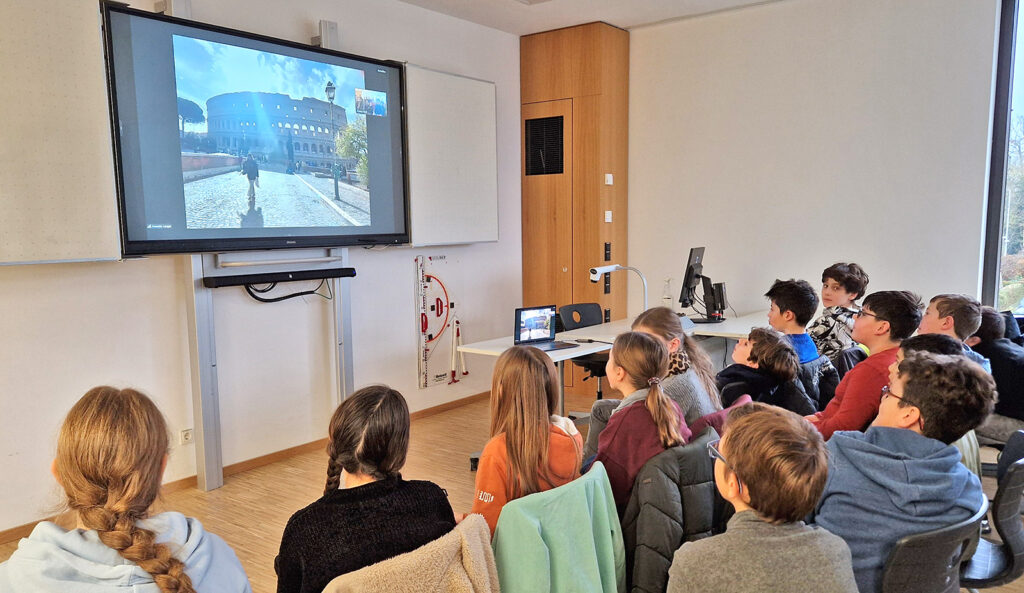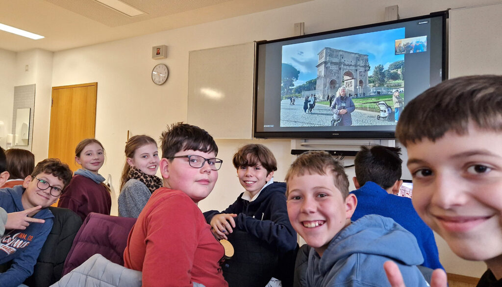 Auf antiken Pfaden rund um das Kolosseum und das Forum Romanum waren die Schülerinnen und Schüler der Klasse 6c Ende November im Lateinunterricht unterwegs. Live geführt wurden wir auf dieser digitalen Tour von der römischen Stadtführerin Jeanette Langer. Neben vielen spannenden Infos zu den römischen Bauwerken wollten wir natürlich auch vieles über Land und Leute erfahren: Welche ist die leckerste Pizza, was passiert eigentlich in Rom, wenn doch einmal Schnee fällt, und wie wird eigentlich in Italien Weihnachten gefeiert? Auf jeden Fall war es ein spannender Ausflug in die ewige Stadt!